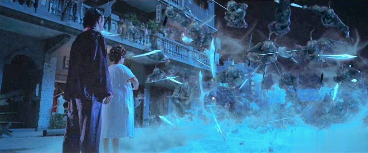 而周星驰袁和平的《功夫》,显然是周星驰天马行空的想象力,和袁和平对大荧幕武术领悟的结合,当年袁和平给《黑客帝国》做武术指导的时期,便钻研出科技加武术的套路,他在《功夫》里同样使用。