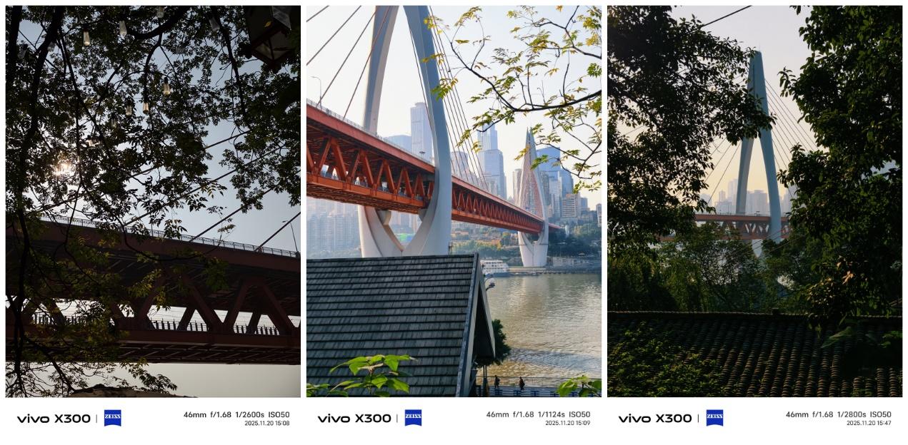 1X焦段下,近景波光粼粼的江面,中景大楼的细节和远处建筑物的轮廓都很清晰,没有受到逆光的影响。2X焦段下从不同角度拍同一景物,X300对光线的强弱、物体的细节和颜色的深浅都很敏感,能还原出真实自然的景色。