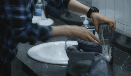 不是象征性地划拉几下,是真的撸起袖子用牙刷认真刷牙。