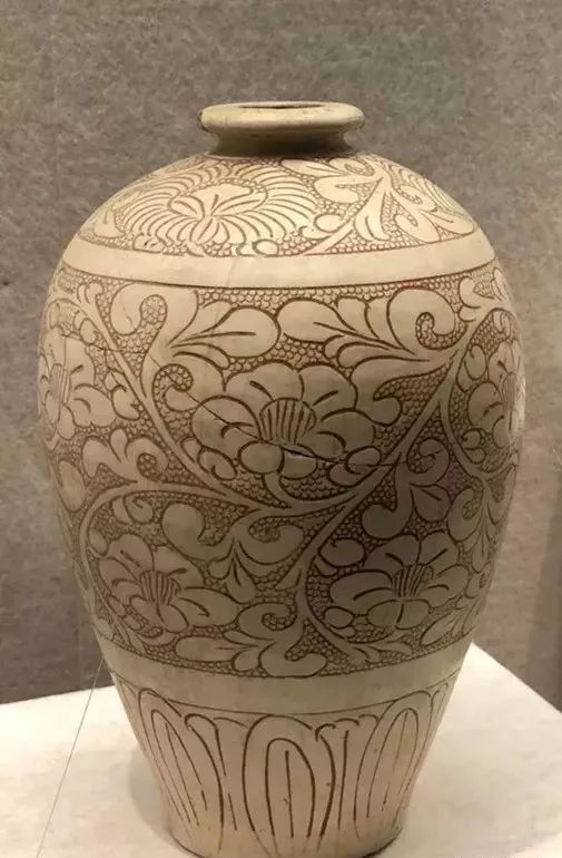 北宋 新安窑白釉珍珠地划花缠枝花卉纹瓶 ,1984年河南省三门峡市区宋墓出土 河南省三门峡市博物馆藏