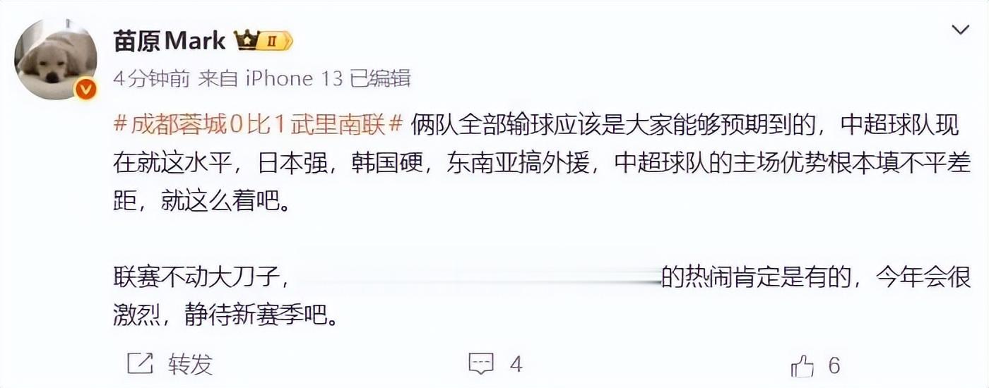 对于媒体人的热议,不少球迷也持赞同意见,认为当前中超联赛的水平就这样,与其出去丢脸,不如腾出更多时间准备冬训,在中超联赛上大展拳脚。也有球迷表示,目前应该放开外援限制,毕竟从目前的情况来看,内援过得太舒坦也保不齐他们会不思进取。