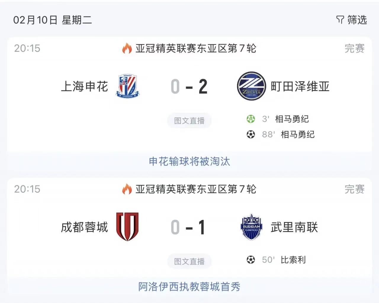 当然,亚冠精英赛不仅仅成都蓉城的成绩惨不忍睹,另外参加的两支中超球队其实也好不到哪去。其中上海海港目前在6场比赛中,取得了2平4负的成绩,未能拿下一场胜利。她们的同城队伍上海申花目前拿到了1胜1平5负的成绩,提前遭遇淘汰。而截至目前,这三支中超球队在参加的20场比赛中,取得了2胜6平12负的成绩,胜率仅仅只有可怜的百分之十。
