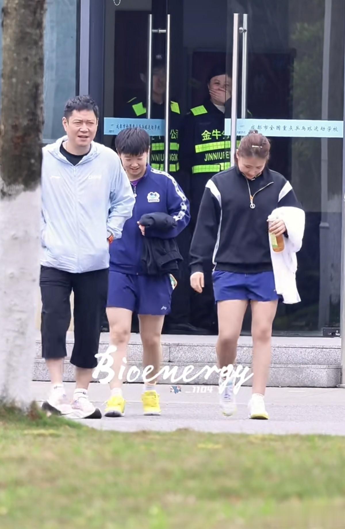 这是在成都封训期间第一次看到邱导和莎莎一起下训,不过女队的其他教练也都是昨天才看到,他们应该都在忙选拔赛的事情了。今天练完体能,莎莎又是拿着裤子出来了,朱梓予也参加了第二次的选拔赛,不过在第一轮中朱梓予输给了杨屹韵,感觉朱梓予应该也是邱贻可在带了。