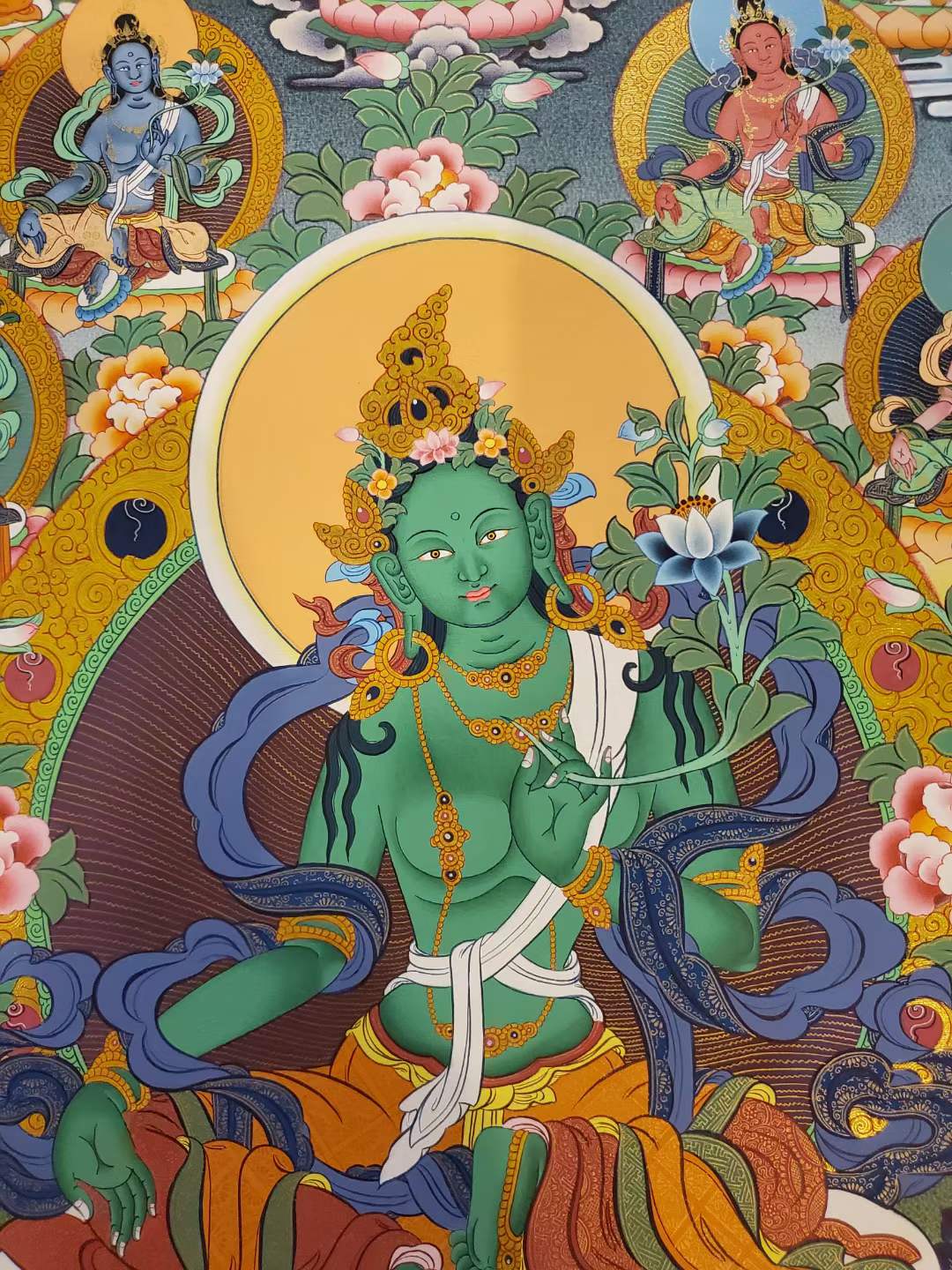 接下来请朋友们欣赏一组沃唐卡编号为157-201122的绿度母唐卡: