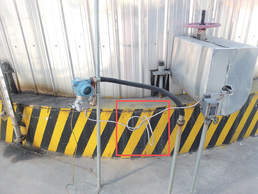 这种设置方式一方面易导致仪表压力传导不准,造成液位仪表信号变送错误或传输产生偏差,使岗位操作人员对生产工况产生误判,埋下安全隐患。另一方面,后续若需要拆除仪表进行检修或校准时,也容易造成毛细管破裂损坏。