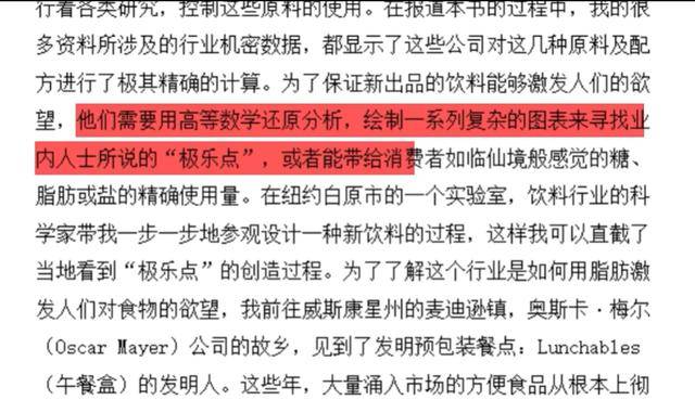 于是他通过实验,找到了食物中加糖量的“极乐点”——即能让人感受到极致愉悦的最佳含糖量。从这开始,食品行业开始借助数据分析、图表绘制等方式寻找糖的“极乐点”。食品巨头一方面协助科研机构研究感官体验,另一方面通过各类营销手段消除人们的负罪感。