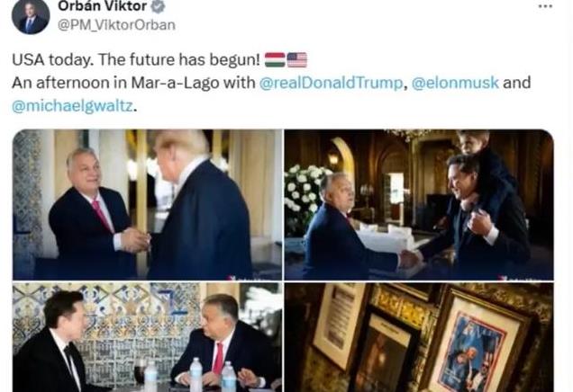 虽然欧尔班没有透露几个人具体聊的是哪一方面的事情,但是从欧尔班在社交媒体发布的会晤的合影,以及社交平台文字就可以看到几个人观点一致,同事他还感叹道“今天的美国。未来已经开始。