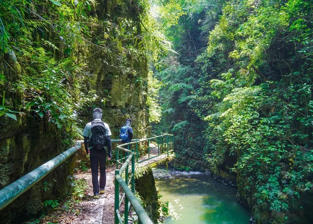 景区打造失败,也给户外旅游留下了空间。现在,贵阳的游客可以参加修文二洞+玉门关+香火岩的徒步团,一般周末发团。环线徒步约8公里,用时约用时约4-5小时,累计爬升落差约为300米(乡道+栈道+山路),小白也可以参加。