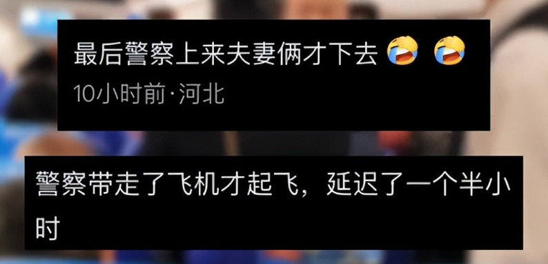 就这样,一场本该准时起飞的航班,被硬生生延误了 1.5 小时。眼看沟通无效,为了保障全体乘客的权益和飞行安全,乘务人员只能选择报警 。当警察赶到机舱后,对孕妇及其丈夫进行了劝导和普法,明确告知其行为已影响公共秩序,夫妻俩这才不情不愿地收拾东西下了飞机,全程还一脸不服气。