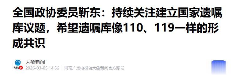 大象新闻——全国政协委员靳东:持续关注建立国家遗嘱库议题,希望遗嘱库像110、119一样的形成共识