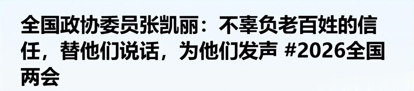 参考资料:澎湃——全国政协委员张凯丽:不辜负老百姓的信任,替他们说话,为他们发声 #2026全国两会