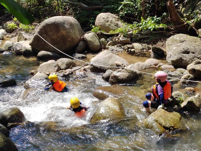 溪降又称人体漂流是不带漂流船的“人身”漂流顺溪而下,穿越山谷