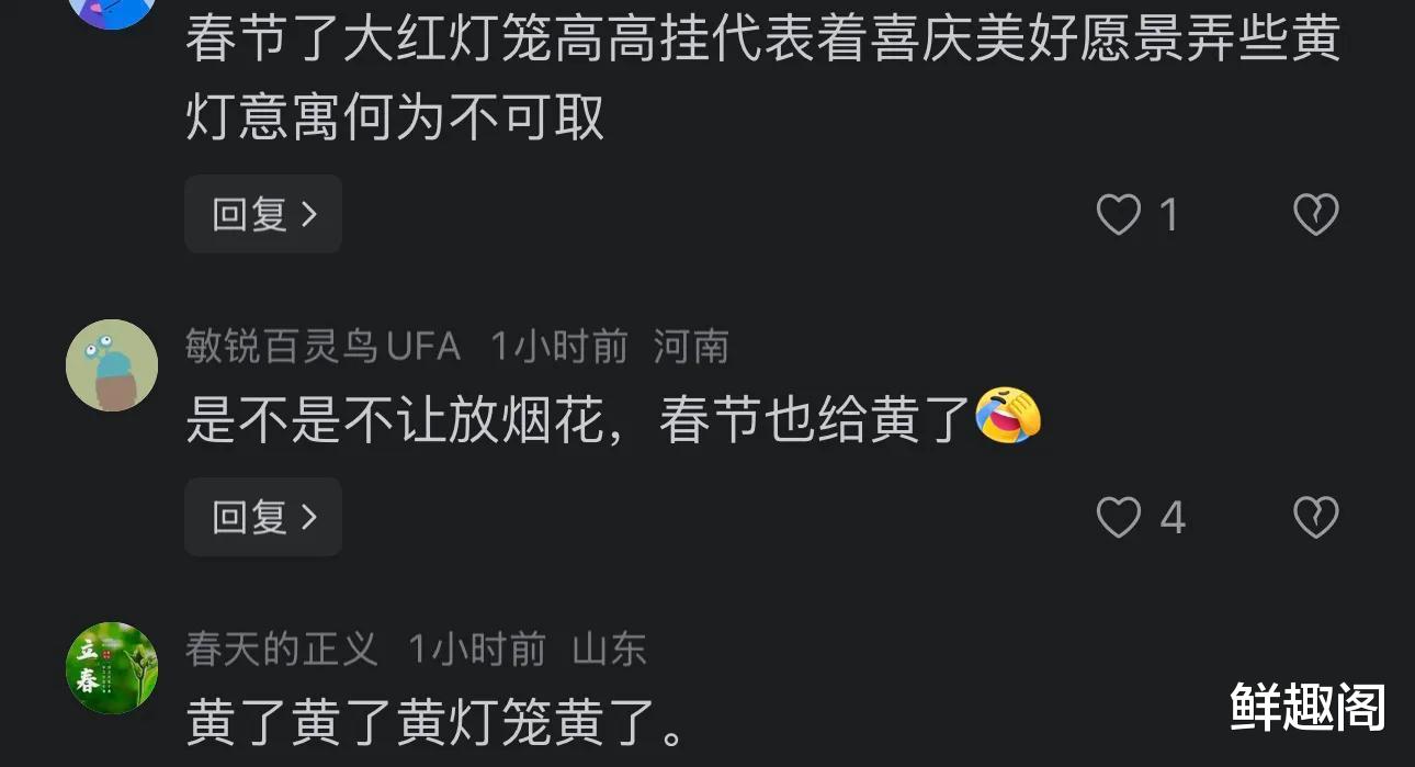 要知道,灯笼作为我们传统节庆的重要装饰,其色彩选择往往承载着丰富的文化内涵和集体情感。而像过年这样的节日,几乎都要挂上红色的灯笼。视频发布之后,网友纷纷展开热议。一部分网友觉得“有点怪异”,甚至有人将黄色灯笼与传统祭祀活动联系起来。