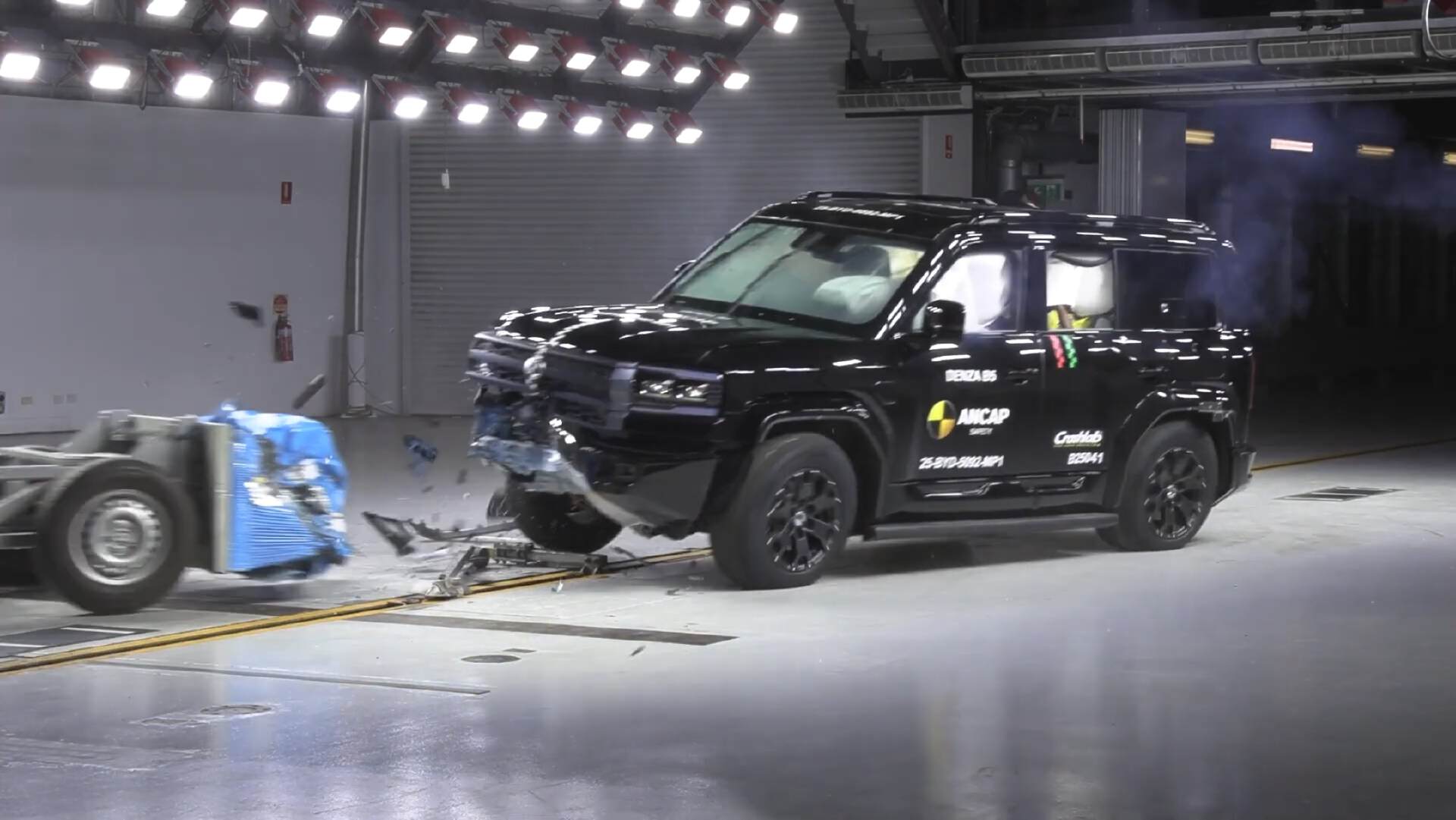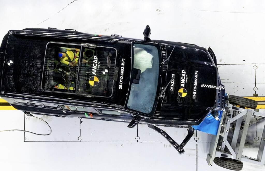 谁懂啊,腾势B5(就是国内的方程豹 豹5)在澳洲ANCAP安全测试里获得了五星安全评级,但是有意思的是,在测试里豹5靠“硬过头”搞出了个反向名场面,人家冲五星评级基本上衡得分,它倒好,正面偏置碰撞里直接把对向模拟测试车撞出了轨道,自己的乘员舱稳得纹丝不动,反倒因为“对撞时车身太硬、给对方车辆风险过高”,被扣满了8分,豹5这是真“头铁”啊,迪子公路坦克的名号名不虚传。