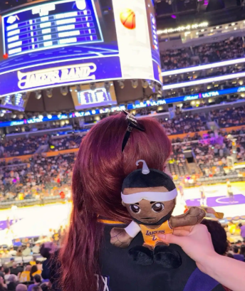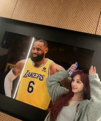 赛前预热与互动瞬间。宋雨琦在赛前通过社交媒体发布与詹姆斯海报的合影,配文"Let's go lakers"为湖人队加油。