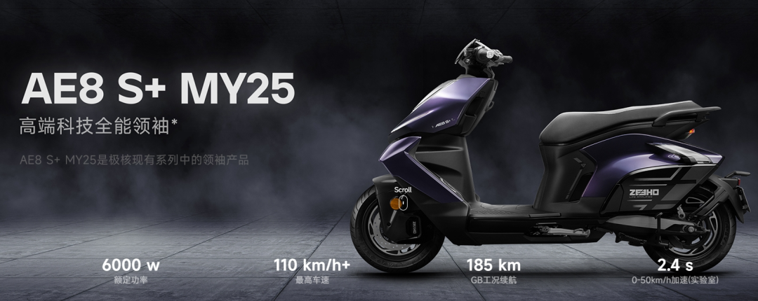 为了强调这款新锐性能猛兽的动力和续航等方面的优势,极核也是采用了多图+数据的形式表现。AE7新车最大功率达到8千瓦,极速可以达到近100公里/小时,而且0-50公里/小时时间仅为4秒,这个动力表现比125cc燃油踏板车要强。