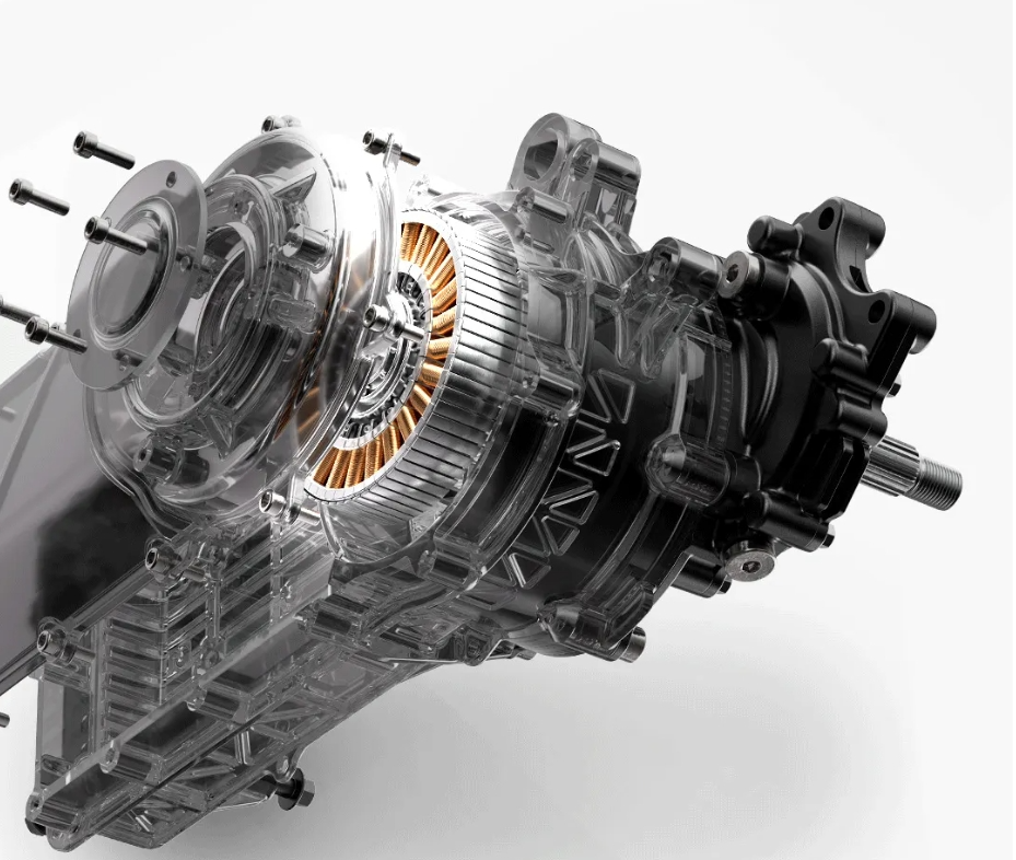 值得一提的是,区别于AE系列以及目前其他品牌的性能电摩,新车AE7采用了较为罕见的侧挂电机。对比传统的轮毂电机,极核采用的这款四合一侧挂电机在动力输出方面效率更高,而且整车的前后配重也更加均匀,有利于操控和过弯时候的灵活性。
