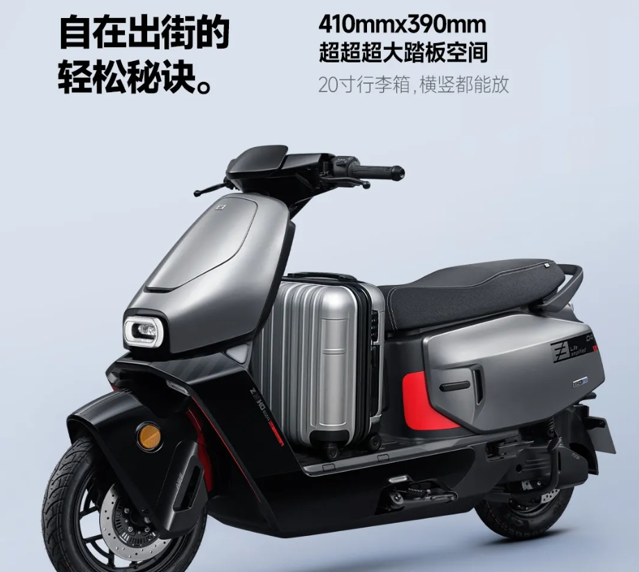 值得注意的是,区别AE系列“型就够”的设计特点,EZ系列在城市通勤实用性方面得到释放,同时,相比EZ3,新车EZ4更是提升了载物和乘坐舒适性等地方。比如新车的脚踏空间比较宽阔,可以放下20寸的行李箱,平时日常通勤也能够放下不少东西。