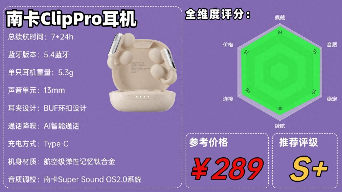 如果你的小伙伴在挑选开放式耳机时,把音质表现和佩戴舒适度放在首位,那这款南卡Clip Pro绝对值得重点关注!