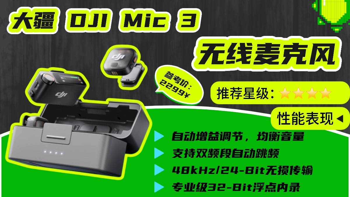 大疆DJI Mic 3平衡了智能适配与操作便捷性,特别适合新手快速上手。搭载智能场景收音功能,可自动调节拾音灵敏度,无需手动反复调试;发射器仅16g,长时间佩戴无坠拉感,轻量化设计延续大疆一贯风格。