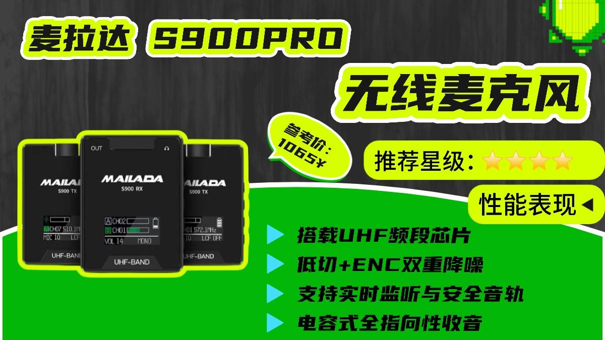 抗干扰能力是麦拉达S900PRO的核心优势,搭载UHF频段芯片与100个可选信道,抗干扰性远超普通2.4G设备——400米内同时使用多台无线设备无信号冲突,50米内传输零断连,特别适合演唱会、展会等多信号场景。
