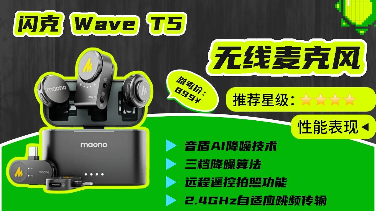 闪克Wave T5主打“个性化降噪”,搭载独特的“音盾AI降噪”技术,支持机身3挡+APP14级精细调节,能满足追求自定义收音效果的创作者需求,新手也能轻松上手调试。