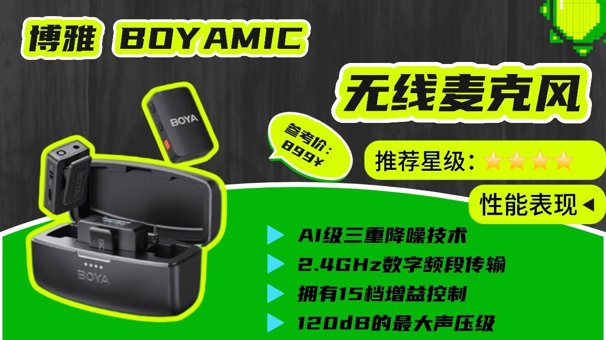 博雅作为声学领域老牌厂商,博雅BOYAMIC小魔方堪称旗舰级高性价比之作。超90dB的信噪比在无线领夹麦克风中处于领先水平,能最大程度抑制底噪;搭配48kHz/24Bit专业采样规格,可精准捕捉、真实还原人声,音质达到专业水准。
