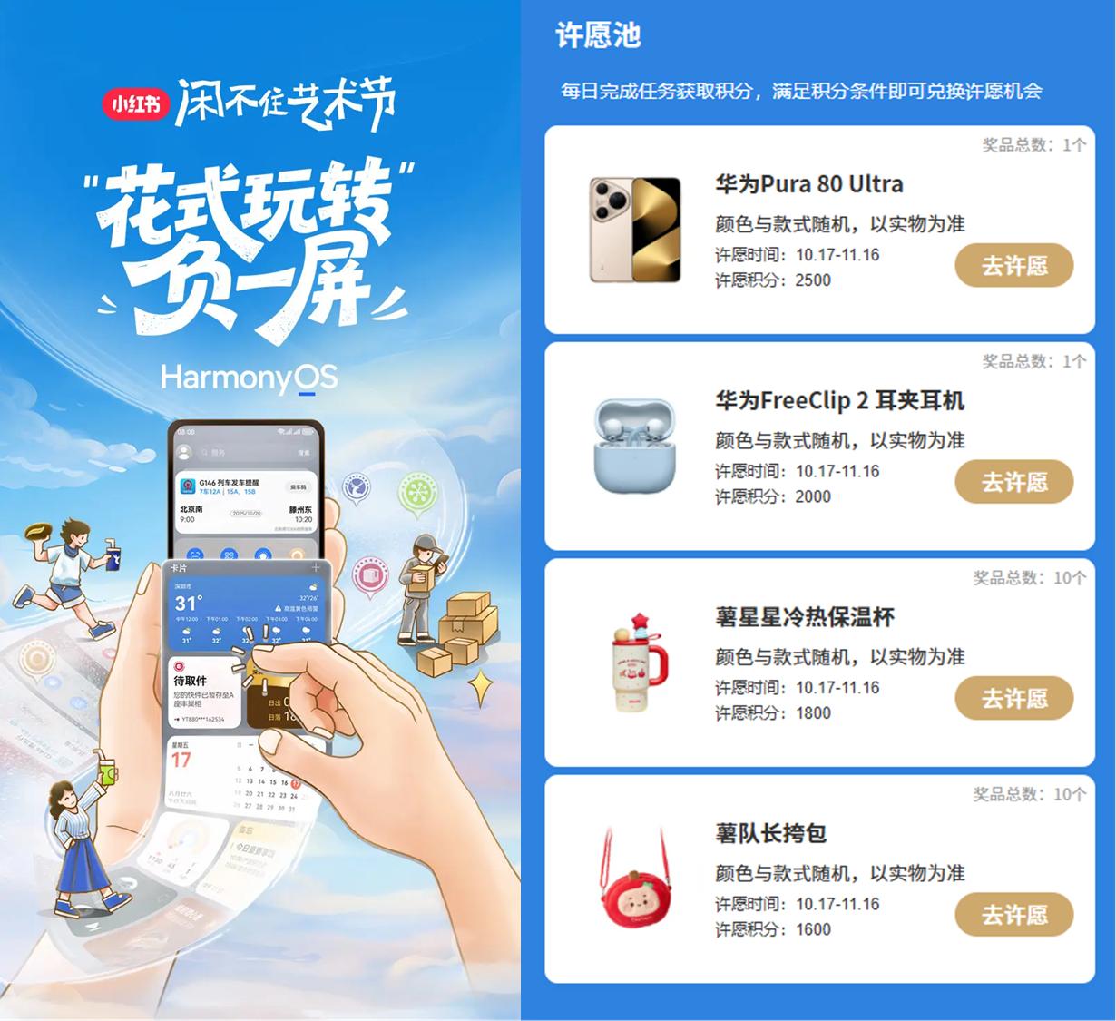 此外,小红书和华为还发起了“华为负一屏卡片布局大赛”,在小红书搜#花式玩转负一屏,就能参与。晒出华为负一屏布局,不仅能瓜分百万流量,还有机会赢华为Pura 80 Ultra、FreeClip 2耳夹耳机等好礼!大家有什么是对华为负一屏好的建议也可以提,我就觉得在调整同一服务的不同卡片样式时,可以直接切换卡片样式而不是新增一个卡片就好了,否则每次都要删除一个,有点儿麻烦。有了这些建议相信官方会和我们一起把华为负一屏做得更贴心好用。赶紧调出你的专属华为负一屏布局,去小红书参与活动吧!说不定下一个赢走旗舰手机的,就是把生活过成“理想模样”的你呢!