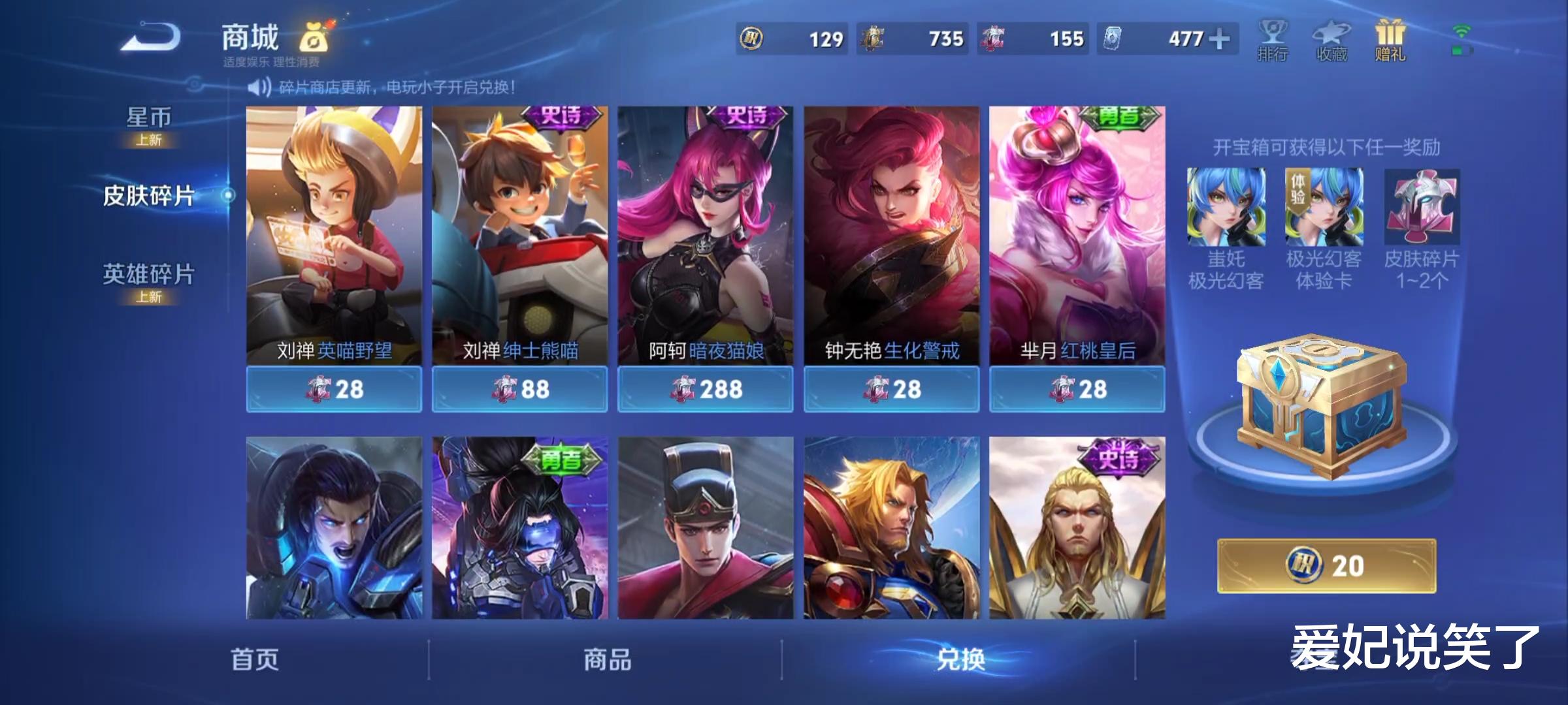 只要你有皮肤碎片你可以随时去进行兑换,这点对于普通玩家来说,绝对算得上是一个非常好的消息。