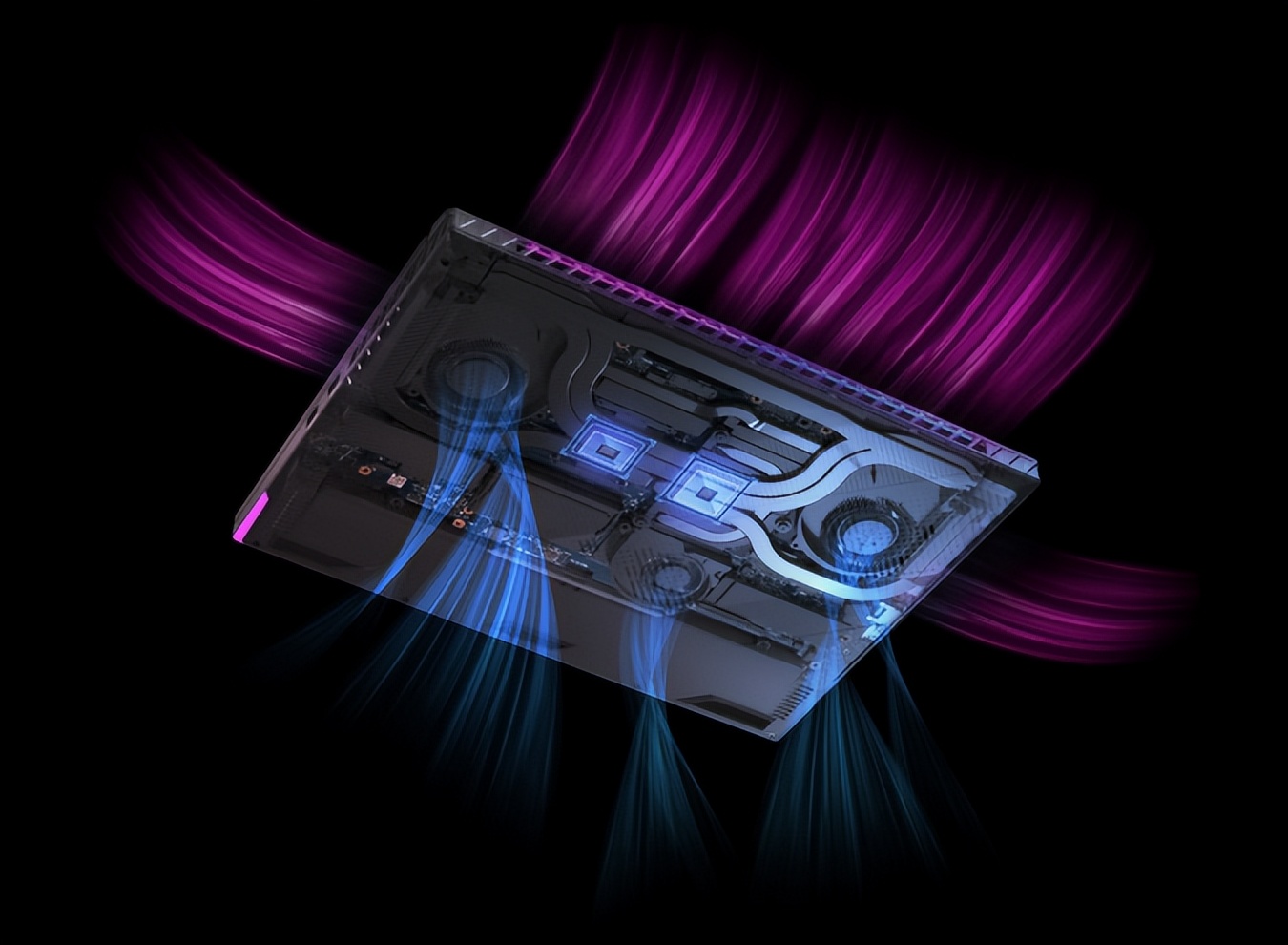冷静控温+沉浸视效,让激战不设限!ROG魔霸9采用冰川散热架构3.0,3风扇搭配7组散热管,373片0.1mm超薄铜鳍片形成17.4 万mm² 散热面积,GPU覆盖暴力熊2代液态金属导热,确保核心性能始终稳定释放不降频。