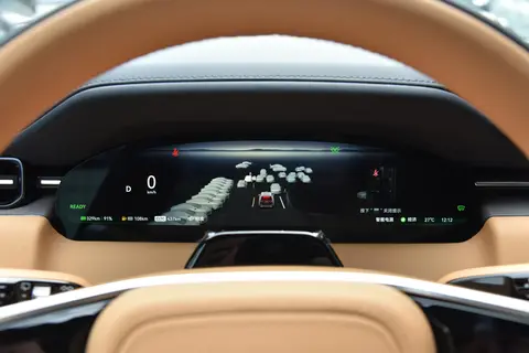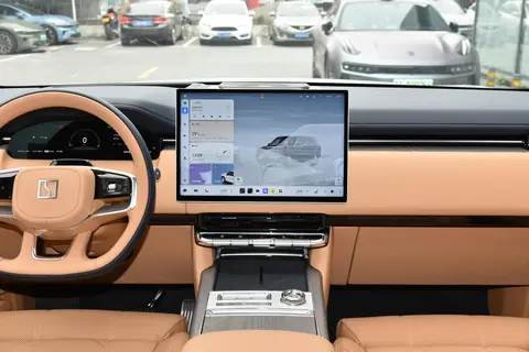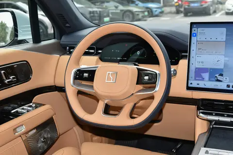 踩下加速踏板,动力来得很线性,不会突然窜出去 —— 这点对家庭用户太重要了,老人孩子坐惯了稳的车,突然窜出去容易晕车。我试的是三电机版本,官方说百公里加速 3.1 秒,虽然没拿秒表计时,但深踩油门的时候,推背感是持续的,不是那种 “猛一下让人慌” 的感觉。方向盘也不飘,握着有力量感,就算开着这么大的车,也觉得 “能控制住”。