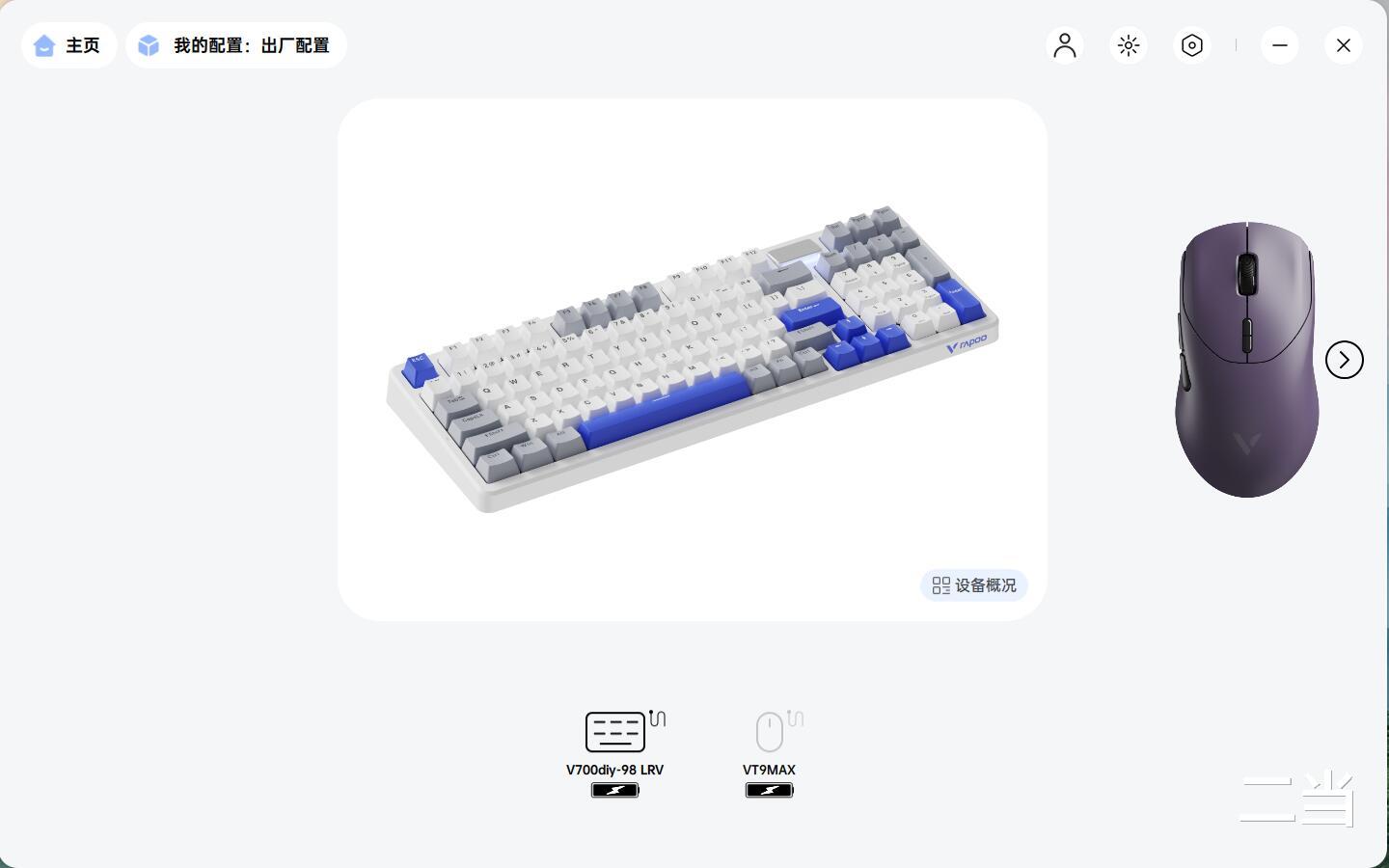 套装内的雷柏VT9 MAX二代,作为雷柏VT9系列第二代产品,拥有皎月白、星空黑和电驭紫三款配色。让桌搭配色更添活力,比一代更加修身,贴合,收腰弧度以及宽体尾部也让抓握位置更加的自然饱满。