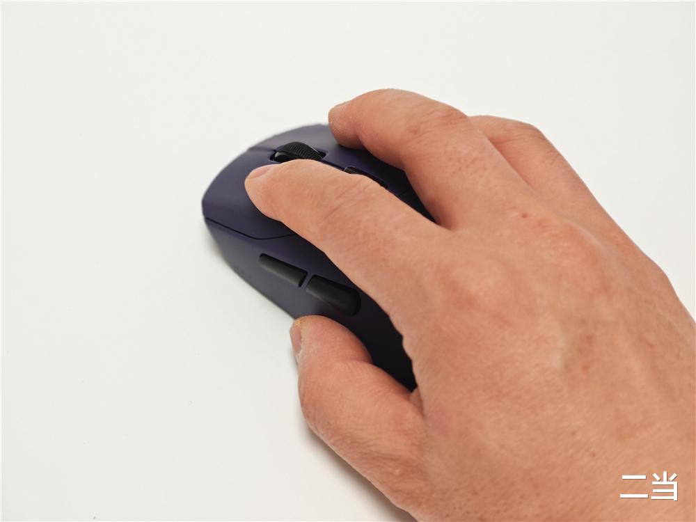 鼠标的宽体三角区和内凹的侧腰为拇指和小指提供自然的摆放位置,便于在游戏中快速提拉和微调鼠标。其尾部加宽与平缓的弧度过渡,能让掌心在抓、趴握时获得饱满的填充感,避免快速移动时的悬空或不稳。