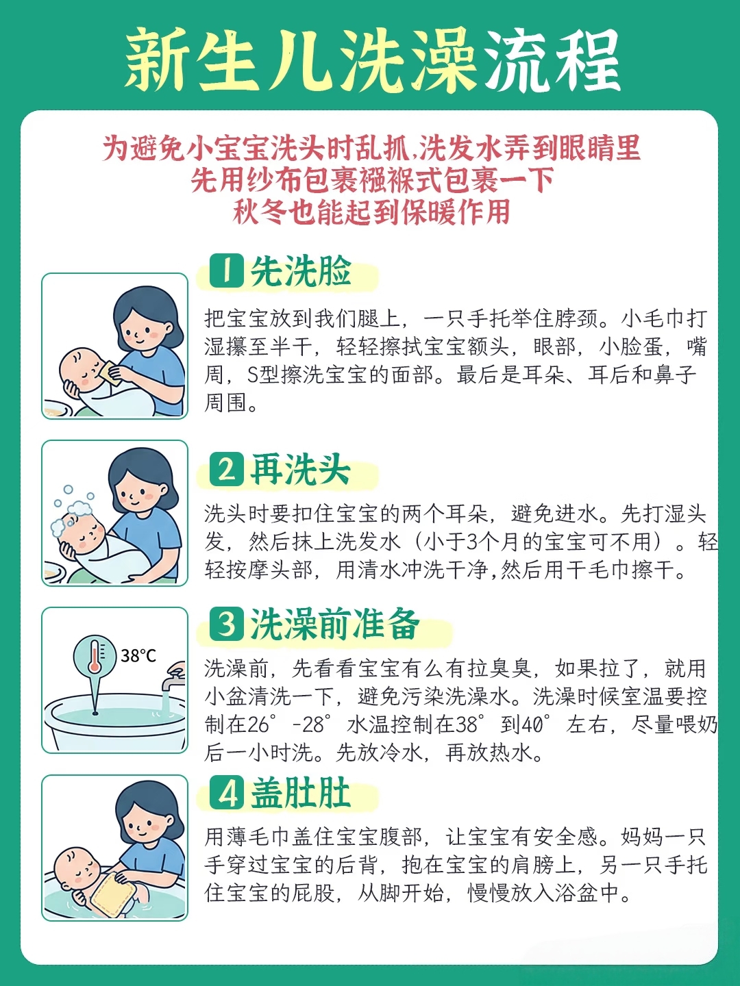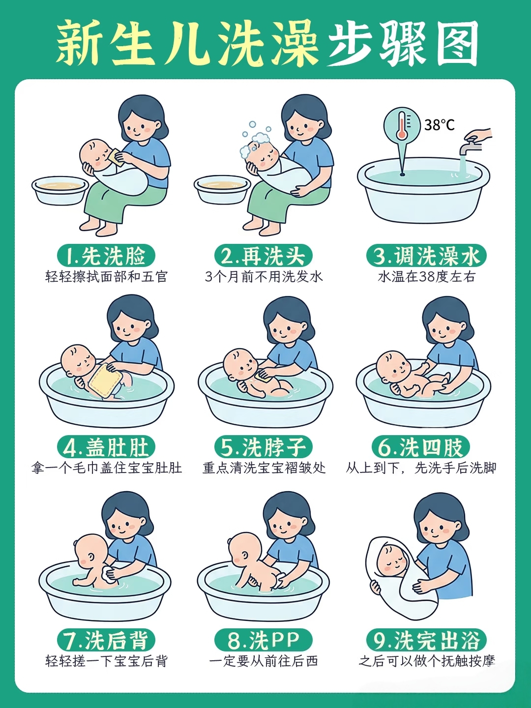 新生儿洗澡9步,直接照着做