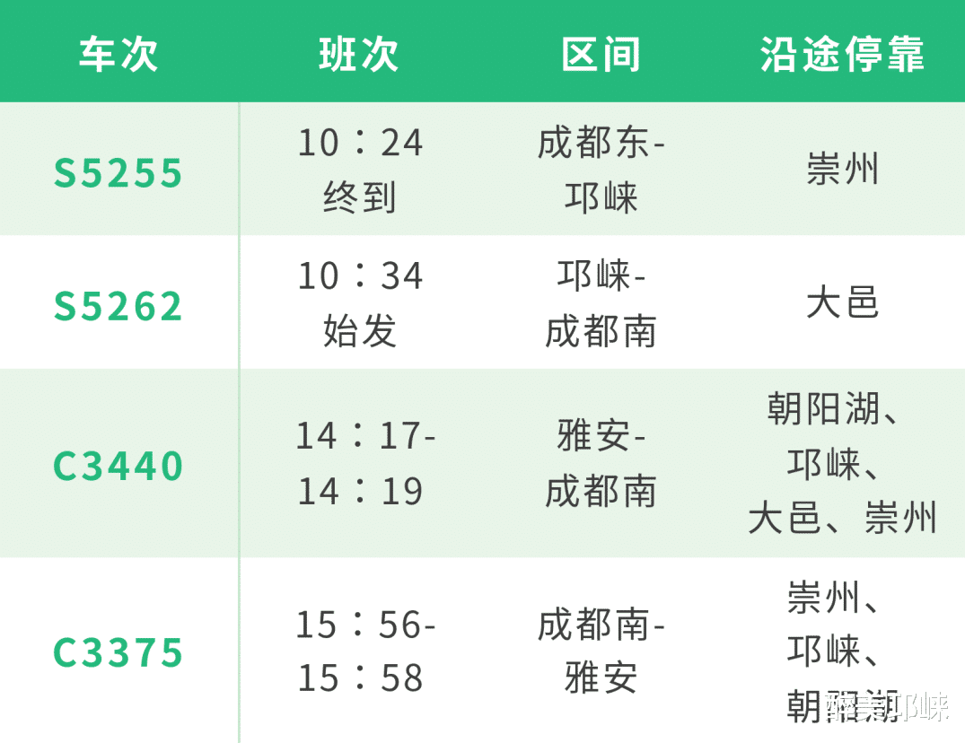 邛崃站车次加开情况: