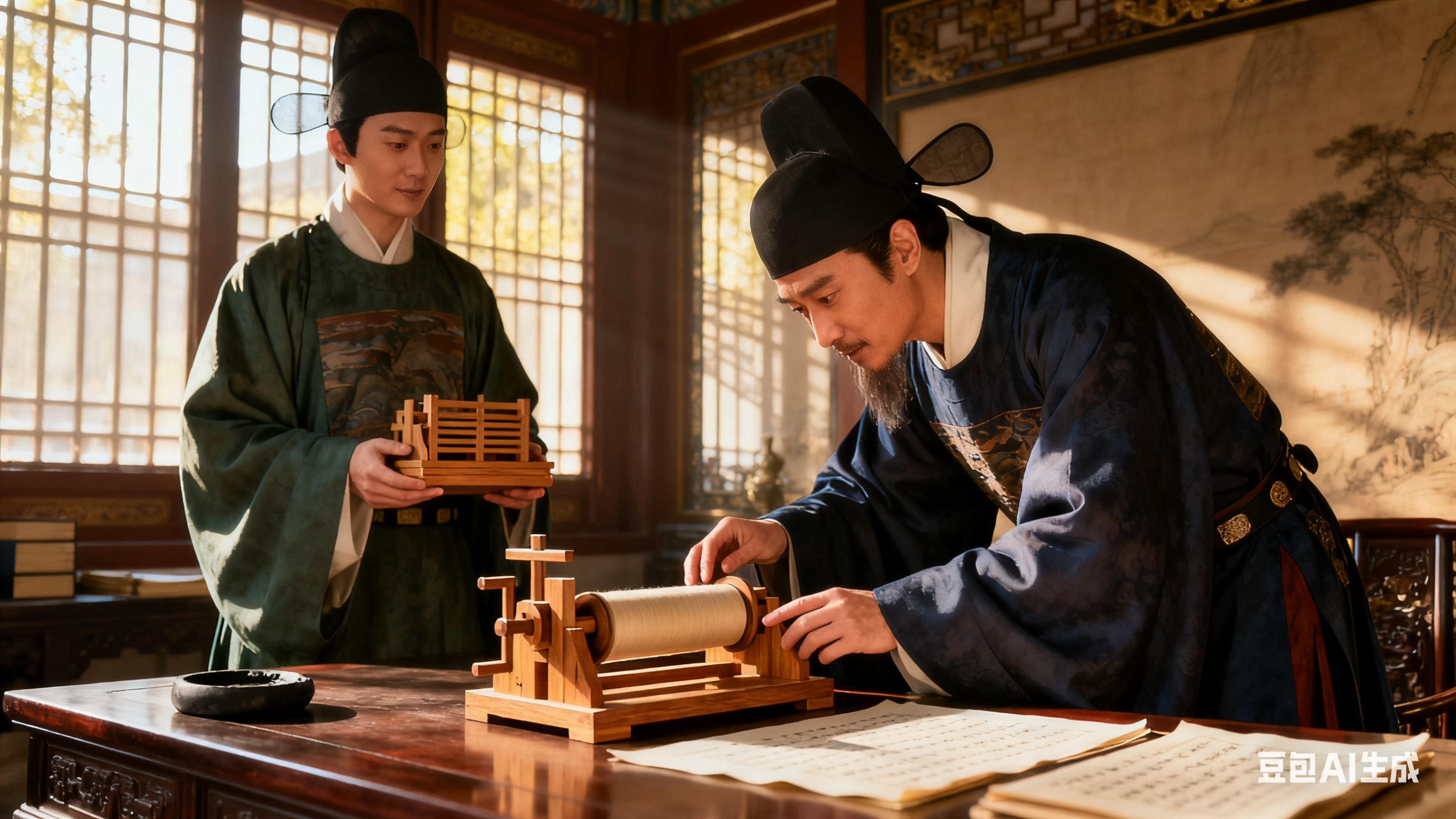 朱元璋对其进行多重考验,朱允熥在诗词比试中写出气势磅礴的词作,更献上滚筒式油印机,解决了知识传播的难题,深得朱元璋赏识。