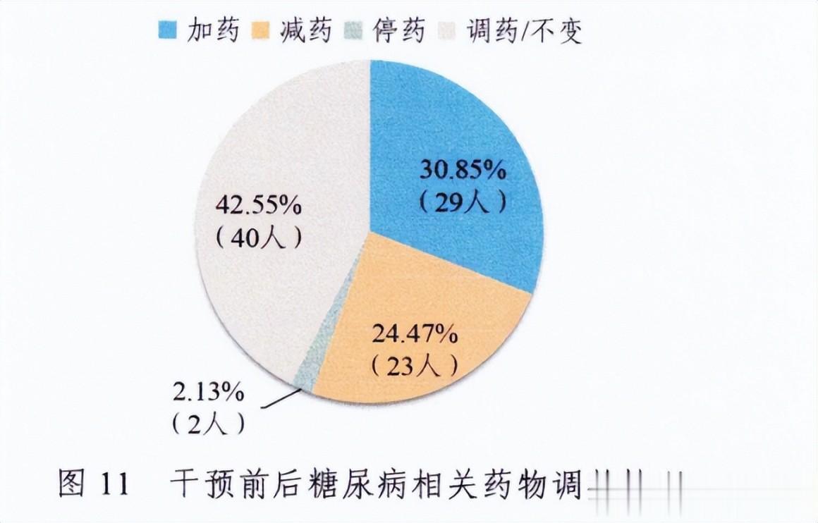 胰岛功能改善 + 减药突破:空腹 C 肽(反映胰岛分泌功能)升高 0.09ng/mL,餐后 2hC 肽升高 0.70ng/mL,胰岛功能逐步恢复;更值得关注的是,78.72% 的基线用药患者中,24.47% 实现减药,2.13% 成功停药,且排除加药影响后,糖代谢改善效果仍稳健。