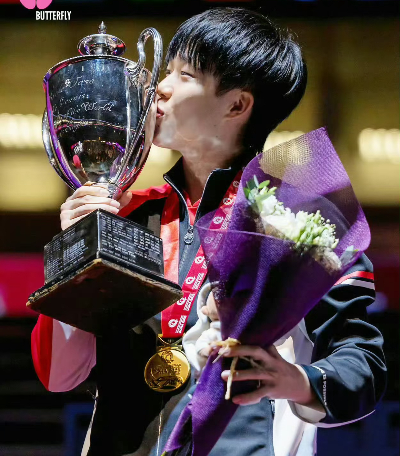 多哈世乒赛男单决赛,王楚钦4-1战胜巴西名将雨果,拿下个人首个三大赛单打冠军。