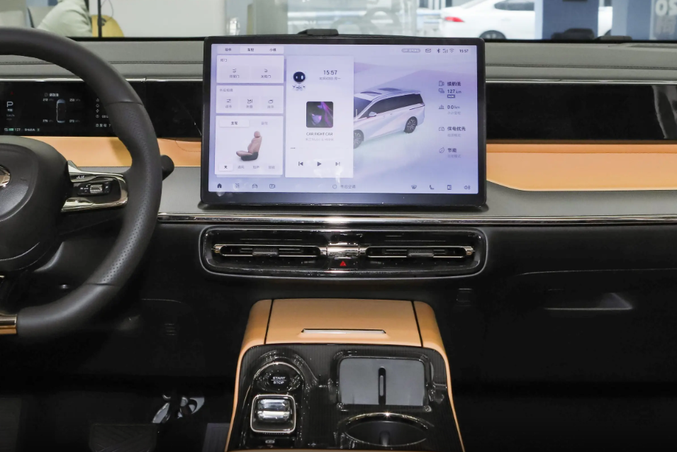 撞色内饰营造了一个居家温馨的乘车空间,中控台布局简单大方,没什么特别的地方,进一步兼顾美观性和实用性。全系标配14.6英寸中控屏,支持华为HiCar,内置最新车机系统,科技功能应对日常用车足够。皮质方向盘握感饱满,支持加热功能,实际操控体验也很不错。