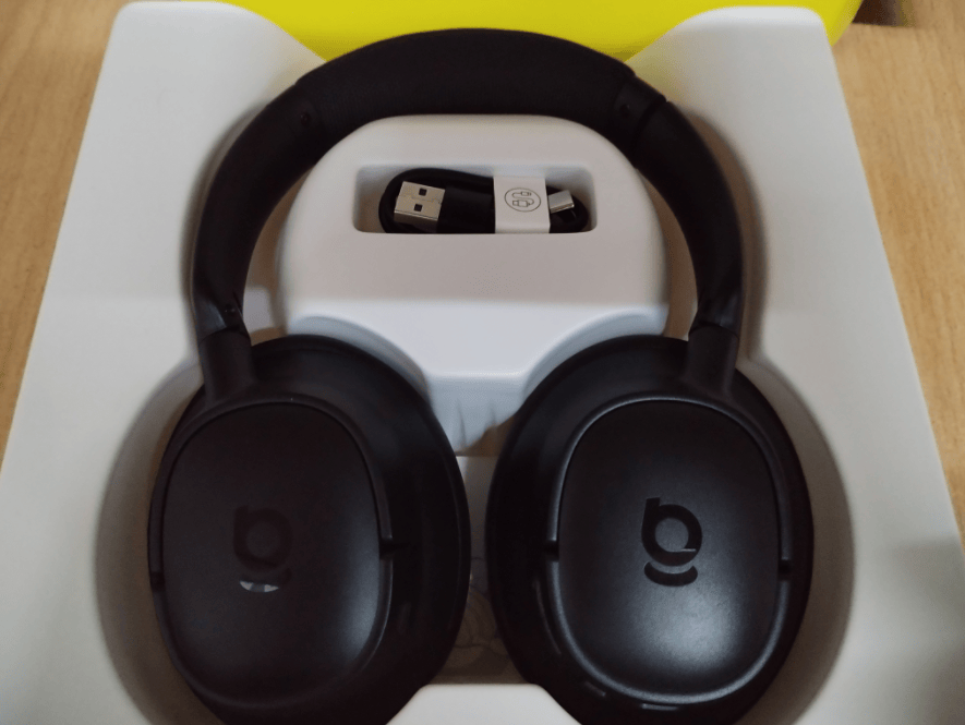 耳机外观延续品牌的极简设计风格,米白配色清爽耐看,蛋白皮耳罩柔软亲肤,头梁支持伸缩调节与折叠收纳,佩戴舒适且便携。耳罩内部采用40mm高弹振膜动圈单元,配合 BassUp低音增强技术,低频浑厚有力,细节表现清晰自然,中频情感丰富,就是高频的延展还不够深,但日常听歌是没有太大的问题的。
