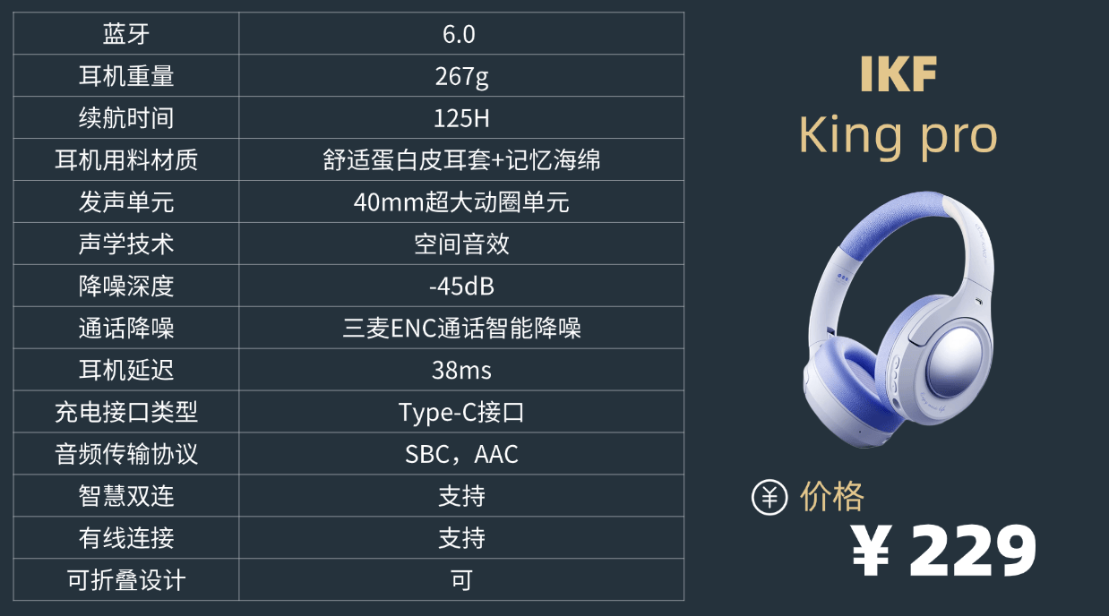 耳机延续了品牌一贯的稳重设计风格,深海蓝磨砂质感很有潮流感。机身轻盈,可折叠收纳进附赠耳机袋,携带方便。耳罩采用慢回弹记忆海绵皮革材质,头梁衬垫柔软且支撑力适中,对不同头型都很友好。长时间佩戴不夹头、也不会压眼镜,在物理隔音的同时保持透气。