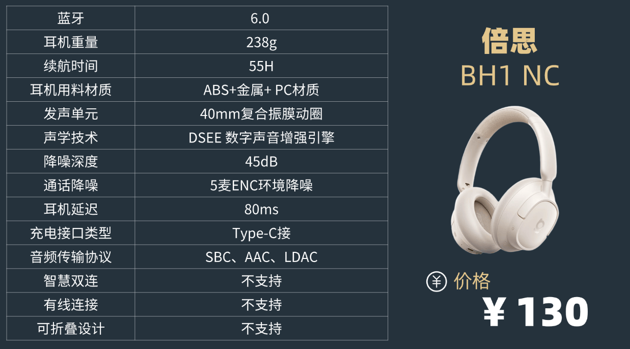品牌3、倍 思B H1 NC头戴式降噪耳机