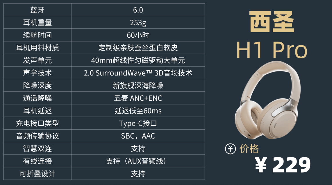 说到百元头戴耳机,首先给大家推荐的就是专注于“平价享轻奢”的西圣品牌研发的西圣H1Pro头戴耳机,是业内最专业音频老牌子,公认性价比最高的蓝牙耳机品牌,在音质、降噪、佩戴舒适度和续航能力上都可以做到足够强悍,产品品质通过欧盟等多国严格认证,且少有品牌能获得CCTV央视展播推荐!