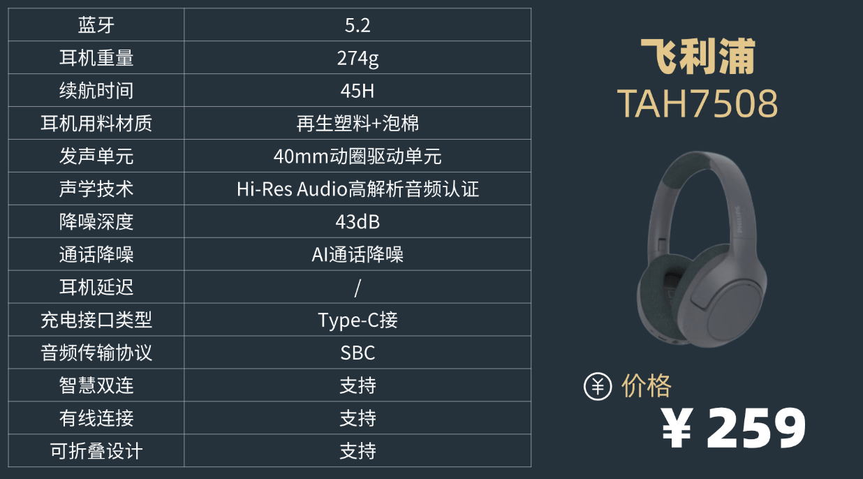 品牌9、飞 利 浦TAH7508头戴式降噪耳机