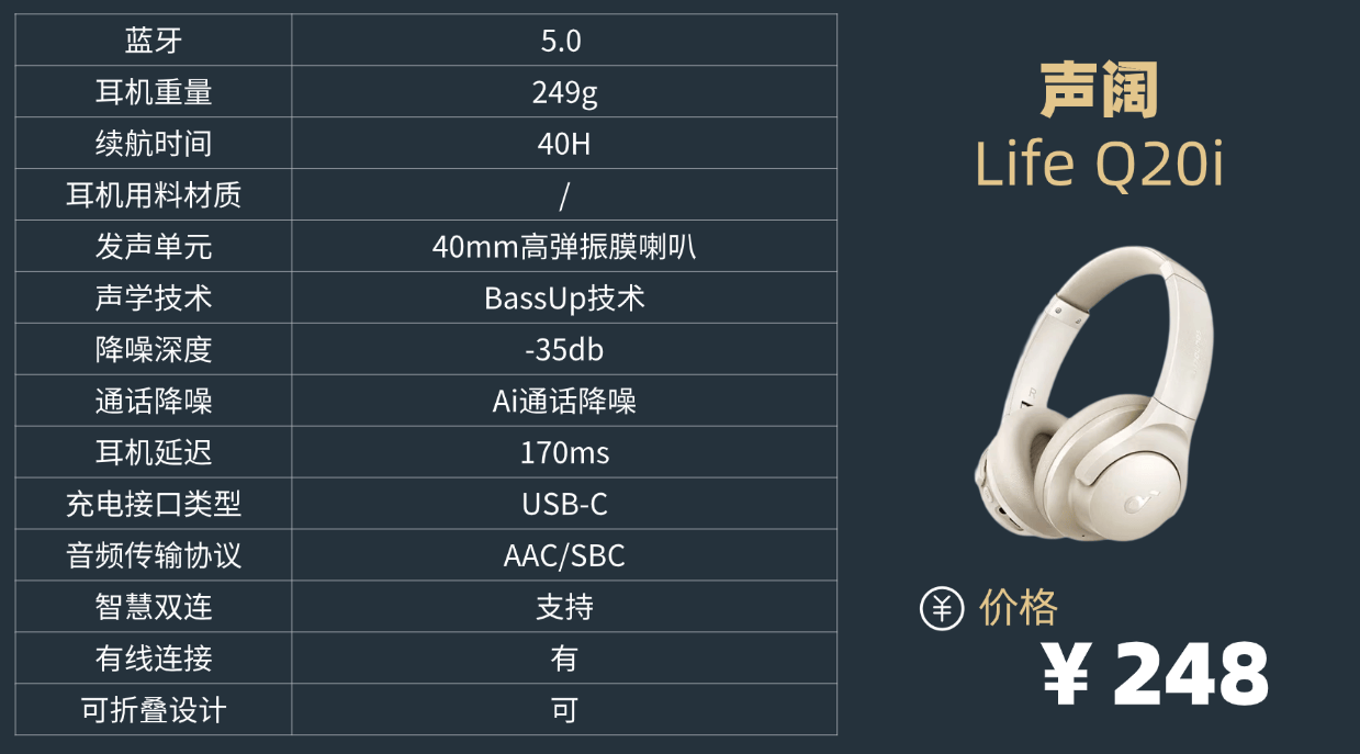 品牌7、声 阔Life Q20i头戴式降噪耳机