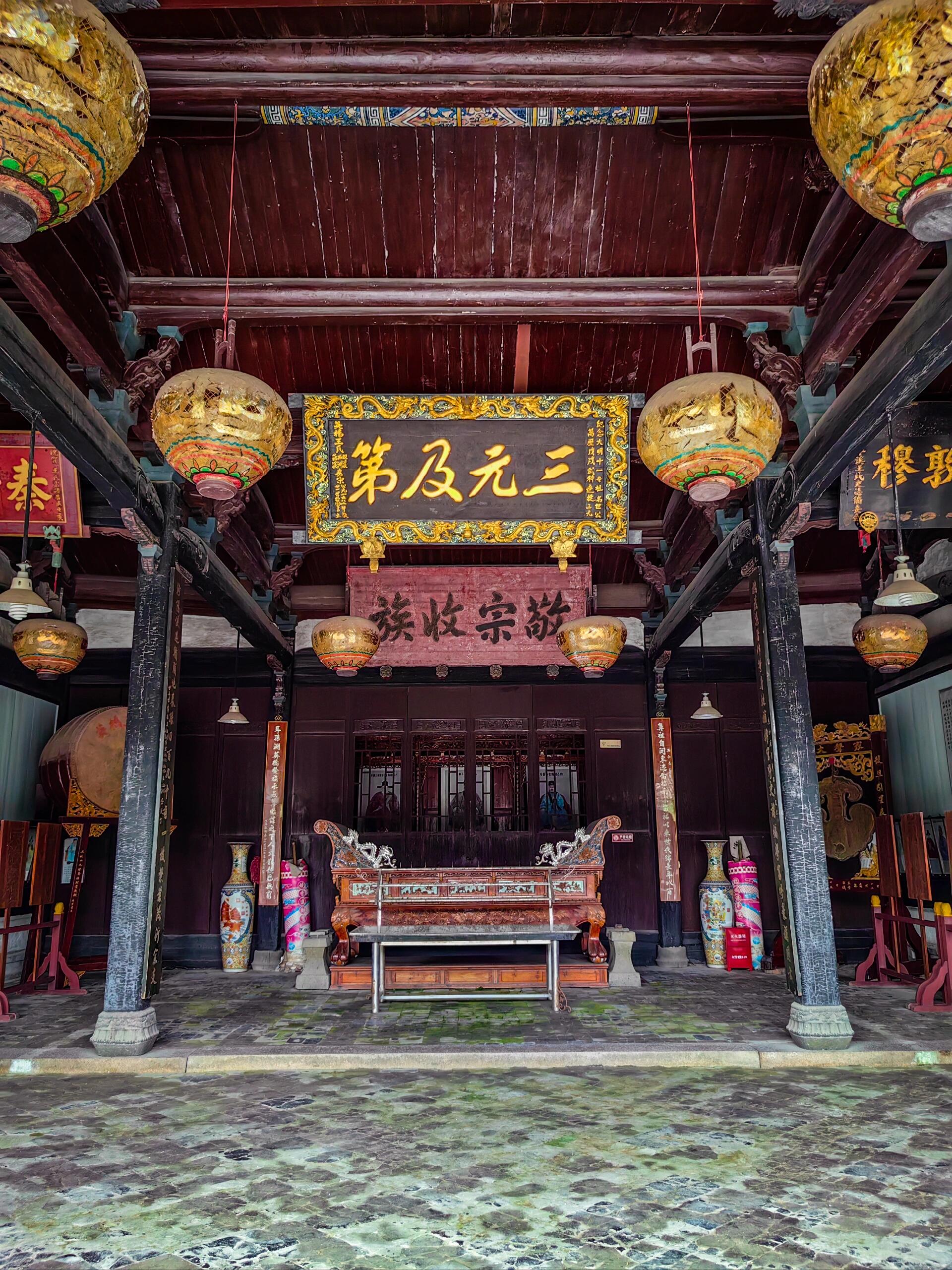 漫步在堡内的青石板路上,随处可见明清时期的古建筑。王氏祖祠、布政司祠、士大夫祠等祠堂建筑庄重肃穆,飞檐翘角间透着历史的厚重。这些祠堂大多采用前厅后堂的布局,主建筑明间为抬梁式结构,两侧厢房则是穿斗式,双坡小青瓦硬山屋顶简洁大气。虽然没有华丽的雕梁画栋,但木雕、砖雕等装饰细节依然精致,展现出浙南地区独特的建筑美学。