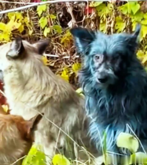 切尔诺贝利隔离区残留大量事故后清理所用的相关的化学物质,如果狗接触过含铜离子或亚铁氰化物的污染物,这些离子会与毛发中的角蛋白结合,在毛鳞片表面形成蓝色化合物。这种染色通常仅作用于毛发表面或浅层,不会影响毛囊,因此并非“长出蓝色毛发”,而是现有毛发被改变颜色。变色的狗目前健康状况正常,说明该物质毒性很低,或仅附着在毛发表面,未通过皮肤吸收或舔舐进入体内,短期未对器官造成损伤,这三只狗的健康情况还需进一步跟踪观察。