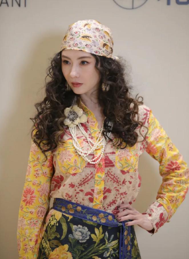 如果穿搭的不合适很有可能看起来给人一种俗气或者说是老气的感觉。张柏芝凭着自己独特的气质和个人魅力,轻松地将这条裙子穿出了别样的风采。她就像是从旧时光画卷中走出的绝世佳人,美艳而贵气,让人不禁联想到“人间富贵花本花”。
