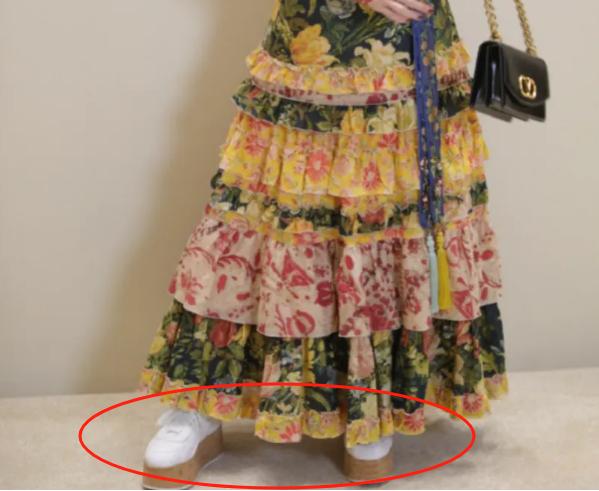对于很多人来说,厚重的松糕鞋可能会造成大家视觉上的一种负担。可是对张柏芝来说,它是她这一身穿搭里面不可或缺的一部分。这款鞋子采用了白面黄底的设计,简约还时尚,正好和她穿的那个裙子相配。最重要的是,松糕鞋的存在有效地拉伸了腿部线条,避免了因为穿着长裙而导致的比例失调问题。