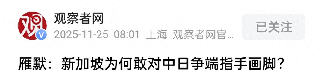 一旦中国和日本的紧张态势确实推进到深水区, 新加坡自然不会继续站出来“大喇叭式调停”, 反而会回到它更熟悉、更稳妥的姿态,安静观察,保持接触,中国说什么,它听什么, 然后在中美之间继续找那个最安全的位置。
